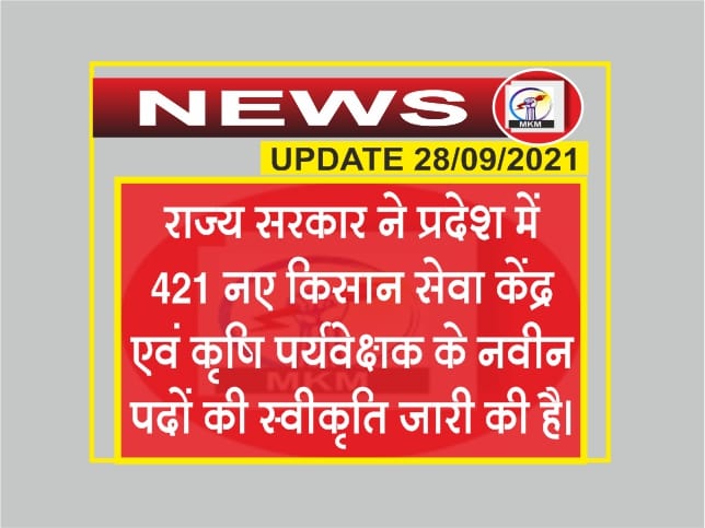 421 नए किसान सेवा केंद्र एवं कृषि पर्यवेक्षक के नवीन पदों की स्वीकृति