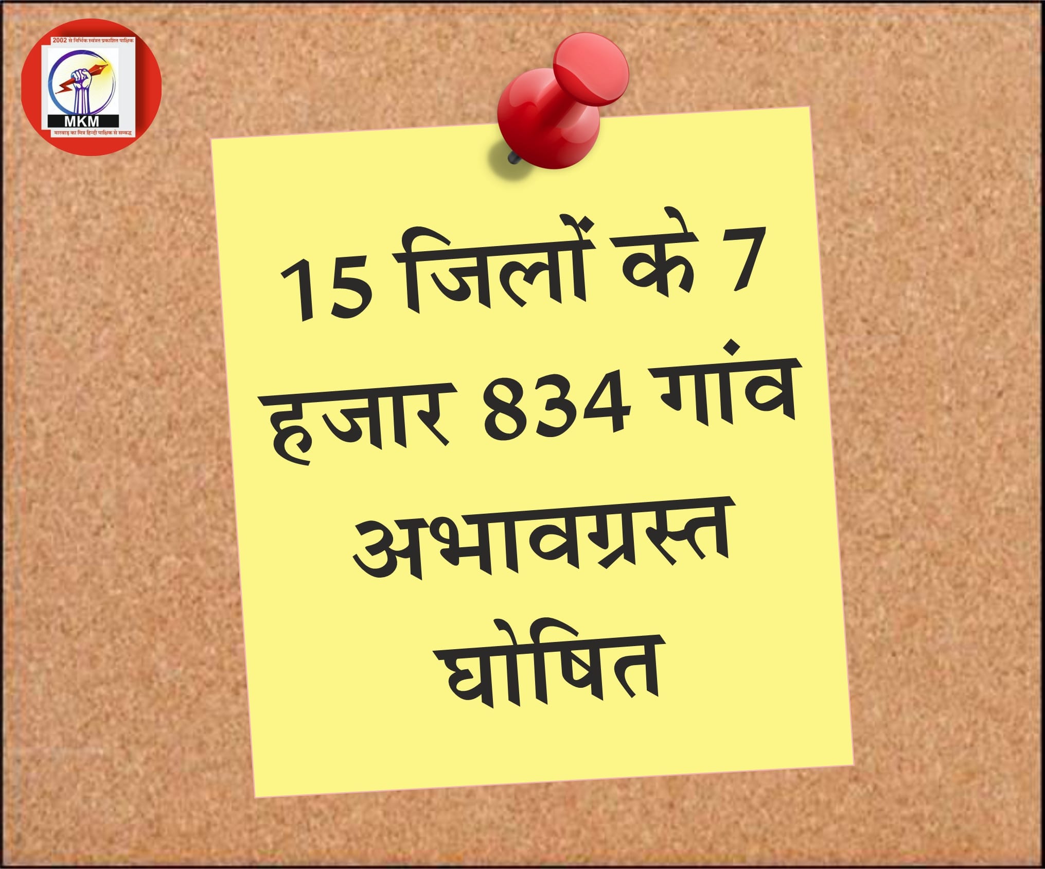 15 जिलों के 7 हजार 834 गांव अभावग्रस्त घोषित