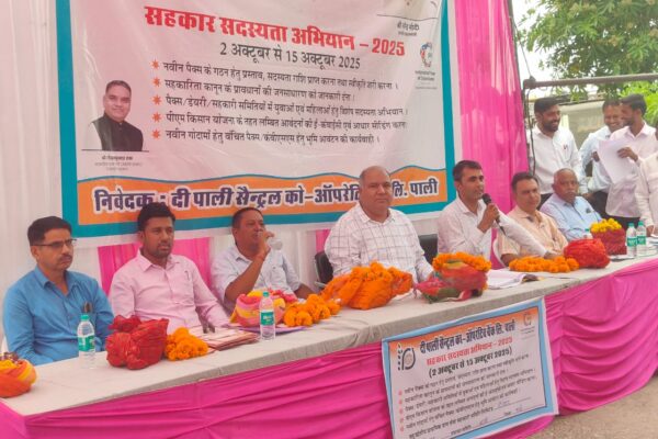 सार  Pali : बीजापुर ग्राम सेवा सहकारी समिति (Pacs) में आज सहकार सदस्यता अभियान के कैम्प के दौरान नवगठित सेणा, लालपुरा, कुमठिया एवं आना ग्राम सेवा सहकारी समिति के अध्यक्ष को समिति का पंजीयन प्रमाण पत्र किया वितरित विस्तार  पाली । डिजिटल डेस्क | 2 अक्टूबर | जिले की बीजापुर ग्राम सेवा सहकारी समिति में…