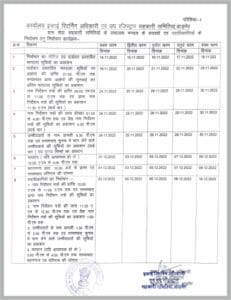 राज्य सहकारी निर्वाचन प्राधिकारी संजय माथुर (State Cooperative Election Authority Sanjay Mathur) ने आदेश जारी कर उप रजिस्ट्रार को इकाई रिटर्निंग अधिकारी नियुक्त किया है। दूसरे चक्र के पहले, दूसरे, तीसरे व चौथे चरण में 42 तथा पांचवे चरण में 41 जीएसएस के चुनाव होंगे, इसके लिए उप रजिस्ट्रार व इकाई रिटर्निग अधिकारी जयंत जयपाल (Deputy Registrar and Unit Returning Officer Jayant Jaipal) ने चुनाव कार्यक्रम घोषित कर दिया है। प्रत्येक जीएसएस में 12 सदस्यीय प्रबंध कार्यकारिणी के चुनाव होंगे। पहले चरण की चुनाव प्रक्रिया 14 नवंबर को, द्वितीय चरण की 15 नवंबर, तृतीय चरण की 16 नवंबर, चौथे चरण की 17 नवंबर व पांचवें चरण की प्रक्रिया 18 नवंबर को शुरू होगी। इसी दिन निर्वाचन का नोटिस एवं वार्डवार प्रस्तावित मतदाता सूचियों का प्रकाशन किया जाएगा।