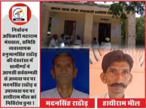 बाड़मेर । डिजिटल डेस्क I 19 सितम्बर I जिले की थापन ग्राम सेवा सहकारी समिति (Thapan Village Service Cooperative Society) में सोमवार को निर्वाचन प्रक्रिया शांतीपूर्ण तरीके से सम्पन्न हुई । निर्वाचन अधिकारी भटाराम मेघवाल, समिति व्यवस्थापक हनुमानसिंह राठौड़ की देखरेख में ग्रामीणों ने आपसी सर्वसम्मती से अध्यक्ष पद पर मदनसिंह राठौड़ व उपाध्यक्ष पद पर हाथीराम भील को निर्विरोध चुना । संचालक मण्डल सदस्य तौर पर कालुराम, प्रर्बतसिंह, स्वरुपसिंह, नरपतसिंह, शम्भुसिंह, छगनसिंह, सुजानसिंह, जालमसिंह एवं संतोषी देवी, रिकुकंवर के निर्विरोध निर्वाचित होने के पश्चात निर्वाचन अधिकारी द्वारा प्रमाण पत्र दिए गए । इस दौरान सरपंच दलपतसिंह राठौड़, मिठाराम नाई, उम्मेदसिंह कम्प्युटर ऑपरेटर, देवसिंह, अनोपसिंह, चेतनराम सहित सहित कई ग्रामीण मौजूद रहे।