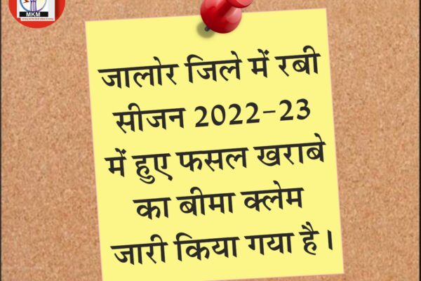 प्रधानमंत्री फसल बीमा योजनान्तर्गत राज्य सरकार द्वारा खरीफ 2023 के लिए जारी अधिसूचना के अनुसार जालोर जिले में बाजरा, ज्वार, तिल, कपास, मूंगफली, ग्वार एवं मूंग फसल को अधिसूचित किया गया है। जालोर । डिजिटल डेस्क I 23 जुलाई I प्रधानमंत्री फसल बीमा योजनान्तर्गत खरीफ 2023 के लिए कृषक अंतिम तिथि 31 जुलाई, 2023 तक…