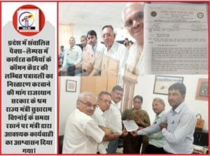 जयपुर । डिजिटल डेस्क I 25 अगस्त I राजस्थान इंटक के प्रदेश अध्यक्ष एवं श्रम कल्याण सलाहकार बोर्ड के उपाध्यक्ष जगदीश राज श्रीमाली के प्रयासों से मुख्यमंत्री अशोक गहलोत ( Chief Minister Ashok Gehlot) के निर्देशानुसार समस्त विभागों के अधिकृत उच्च अधिकारियों एवं इंटक के अधिकृत पदाधिकारियों के मध्य राजस्थान के श्रम राज्य मंत्री सुखराम बिश्नोई (Minister of State for Labor Sukhram Bishnoi) की अध्यक्षता में राजस्थान इंटक के प्रदेश अध्यक्ष जगदीश राज श्रीमाली के नेतृत्व में 24 अगस्त 2022 को शासन सचिवालय में मीटिंग आयोजित की गई । जिसमें राजस्थान सहकारी कर्मचारी संघ के प्रदेश अध्यक्ष नंदलाल वैष्णव (Nandlal Vaishnav, state president of Rajasthan Cooperative Employees Union) के नेतृत्व में प्रतिनिधी मण्डल देवेन्द्र कुमार सैदावत, बाबुलाल डांगी, विजेन्द्र कुमार शर्मा ने प्रदेश में संचालित पैक्स-लैम्पस में कार्यरत कर्मियों के कॉमन कैडर (common cadre) की लम्बित पत्रावली का निस्तारण करवाने की मांग राजस्थान सरकार के श्रम राज्य मंत्री सुखराम विश्नोई के समक्ष रखने पर मंत्री द्वारा आवश्यक कार्यवाही का आश्वासन दिया गया। इसके पश्चात श्री वैष्णव के नेतृत्व में सहकारिता विभाग प्रमुख शासन सचिव श्रेहा गुहा को पूर्व में राजस्थान सरकार द्वारा पैक्स-लैम्पस कर्मियों के नियोक्ता निर्धारण कॉमन कैडर गठित करने के लिए जारी यू. ओ. नोट 5 मार्च 2019 और स्क्रीनिंग से वंचित कार्मिकों की स्क्रीनिंग करने की मांग की हैं ।