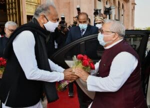 इससे पहले राज्यपाल श्री मिश्र के बुधवार प्रातः 11:00 बजे विधानसभा पहुंचने पर विधानसभा अध्यक्ष डॉ. सी.पी. जोशी, मुख्यमंत्री श्री अशोक गहलोत, संसदीय कार्य मंत्री श्री शांति धारीवाल, मुख्य सचिव श्रीमती उषा शर्मा और विधानसभा के सचिव श्री महावीर प्रसाद शर्मा ने उनका स्वागत किया। विधानसभा के मुख्य द्वार पर राज्यपाल श्री मिश्र को आरएसी बटालियन द्वारा सलामी दी गई। राज्यपाल श्री मिश्र को अभिभाषण के लिए सदन में प्रोसेशन में ले जाया गया।