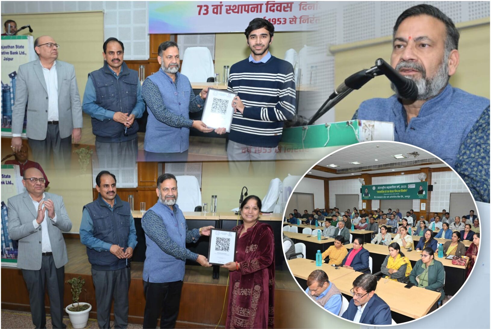 जयपुर । डिजिटल डेस्क | 20 नवम्बर | ’72वें अखिल भारतीय सहकार सप्ताह’ का आयोजन देश सहित प्रदेश की प्रत्येक सहकारी संस्थाओं में किया गया । इसी सहकार सप्ताह के समापन समारोह के अवसर पर राजस्थान राज्य सहकारी बैंक (RSCB) प्रबंध निदेशक (MD) संजय पाठक द्वारा चालू खाताधारक मोहन खण्डेलवाल एवं क्रियांश, क्रिएशन को क्यूआर कोड (QR Code) प्रदान कर सेवाओं की शुरूआत की गई। साथ ही, क्यूआरकोड स्कैन सुविधा के माध्यम से अब सहकारी बैंकों के व्यावसायिक खाताधारक आमजन से डिजीटल पेमेंट के जरिये सीधे ही अपने खाते में राशि प्राप्त कर सकेंगे । वही खाताधारको द्वारा निरंतर क्यू कोड सेवा की मांग की जाती रही है, जिस पर विशेष ध्यान देकर बैंक द्वारा यह सेवा शुरू की गई । इससे सहकारी बैंकों में चालू खातों की संख्या बढ़ने के साथ-साथ डिपोजिट बढ़ने की भी पूरी संभावना है ।