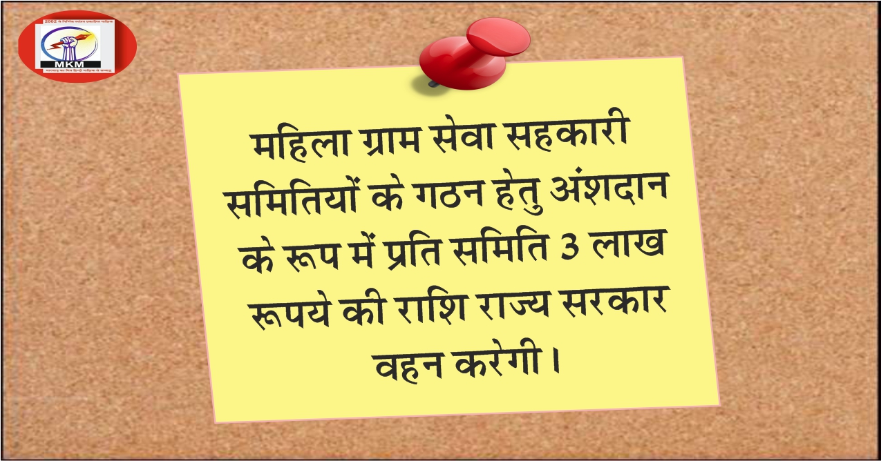 श्री गहलोत द्वारा दी गई स्वीकृति के अनुसार इन महिला ग्राम सेवा सहकारी समितियों के गठन हेतु अंशदान के रूप में प्रति समिति 3 लाख रूपये की राशि राज्य सरकार वहन करेगी। उल्लेखनीय है कि मुख्यमंत्री ने बजट वर्ष 2023-24 में प्रत्येक ब्लॉक में एक महिला ग्राम सेवा समिति के गठन हेतु अंशदान को माफ करने व अंशदान की उक्त राशि राज्य सरकार द्वारा उपलब्ध करवाये जाने की घोषणा की थी।