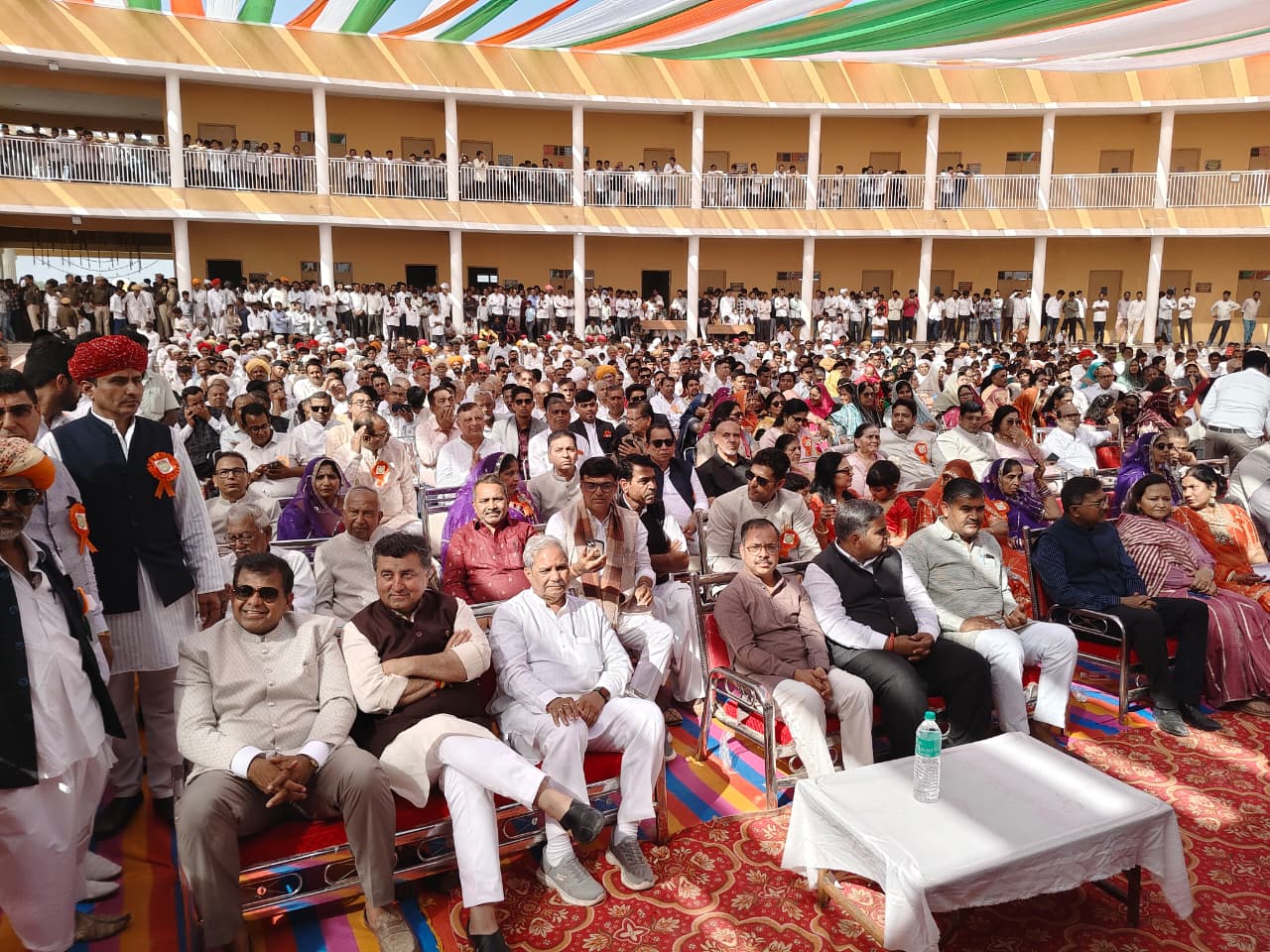 समारोह में विशिष्ट अतिथि उद्योग एवं वाणिज्य राज्य मंत्री के.के.विश्नोई ने कहा कि शिक्षा, चिकित्सा सहित समाज कल्याण के हर क्षेत्र में भामाशाहों ने बढ़-चढ़कर सहयोग दिया है। उन्होंने कहा कि विकसित राजस्थान कार्यक्रम के तहत कल्याणकारी योजनाओं के माध्यम से राज्य के प्रत्येक गांव-ढाणी तक ग्रामीणों को लाभ प्राप्त हो रहा है। राज्य सरकार के दो वर्ष के अल्पकालिक समय में अनेक महत्वपूर्ण कार्य हुए हैं जिसके फलस्वरूप देश के प्रधानमंत्री श्री नरेंद्र मोदी के संकल्प विकसित भारत को साकार करने में सहयोग मिला हैं।