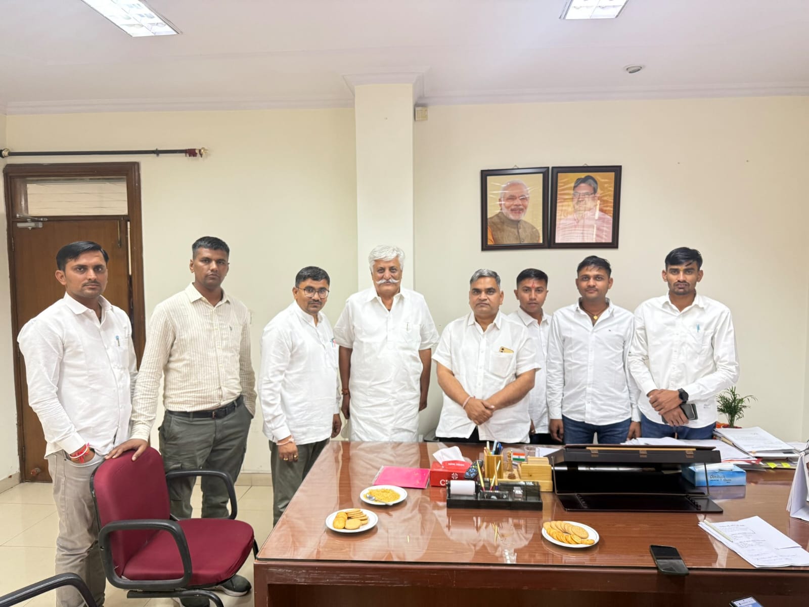 सहकारिता मंत्री से मुलाकात कर तिथि बढ़ाने की मांग करते भाजपा नेता बालाराम मूंढ