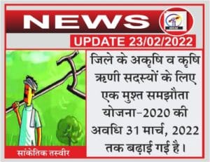 जालोर 23 फरवरी। जिले के अकृषि व कृषि ऋणी सदस्यों के लिए एक मुश्त समझौता योजना-2020 की अवधि 31 मार्च, 2022 तक बढ़ाई गई है।