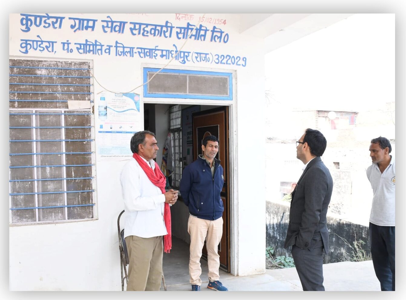 जिला कलक्टर ने कुण्डेरा ग्राम सेवा सहकारी समिति का औचक निरीक्षण कर व्यवस्थापक राजेन्द्र शर्मा से सहकारी समिति द्वारा कृषक हित में किए जा रहे कार्यो के बारे में विस्तार से जानकारी प्राप्त की।