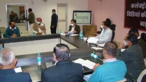 जिला स्तरीय जन सुनवाई एवं सतर्कता समिति की आयोजित बैठक में मौजूद जिला कलक्टर लोक बंधु एव विभागीय अधिकारी